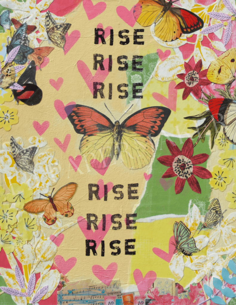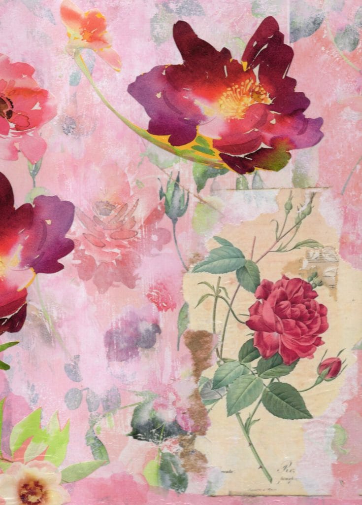 My work celebrates French ephemera, vintage papers, botanical designs, and old wallpapers, often adorned with delicate florals. I also incorporate acrylics, inks, and other mediums to craft unique pieces, including posters, canvas wraps, and wood-printed art. Beyond visual creations, I have self-published small booklets of my poetry, offering a glimpse into the stories that inspire my art.
